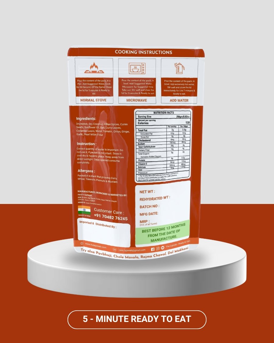 Rediscover the warmth of traditional cuisine with Lajwabās Ready-to-Eat Shevaga Bhaji (Drumstick)āa perfect fusion of convenience and authenticity. Shop our full range of ready-to-eat meals, instant mixes, and freeze-dried Indian dishes to upgrade your culinary routine. Order online now for an instant gourmet experience delivered to your doorstep.
